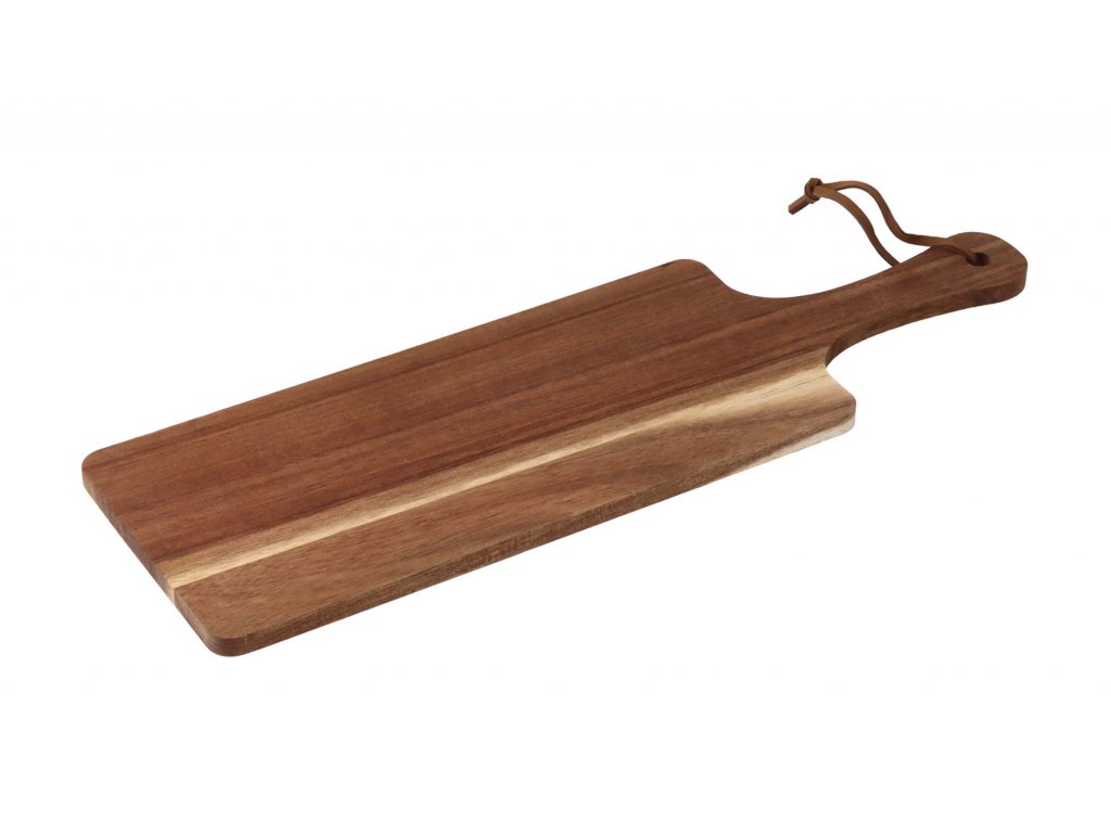 Úzka doska z akáciového dreva nájde využitie v každej kuchyni. Pre svoju originálnu kresbu dreva a nízku váhu je obľúbená najmä na servírovanie pochutín.
