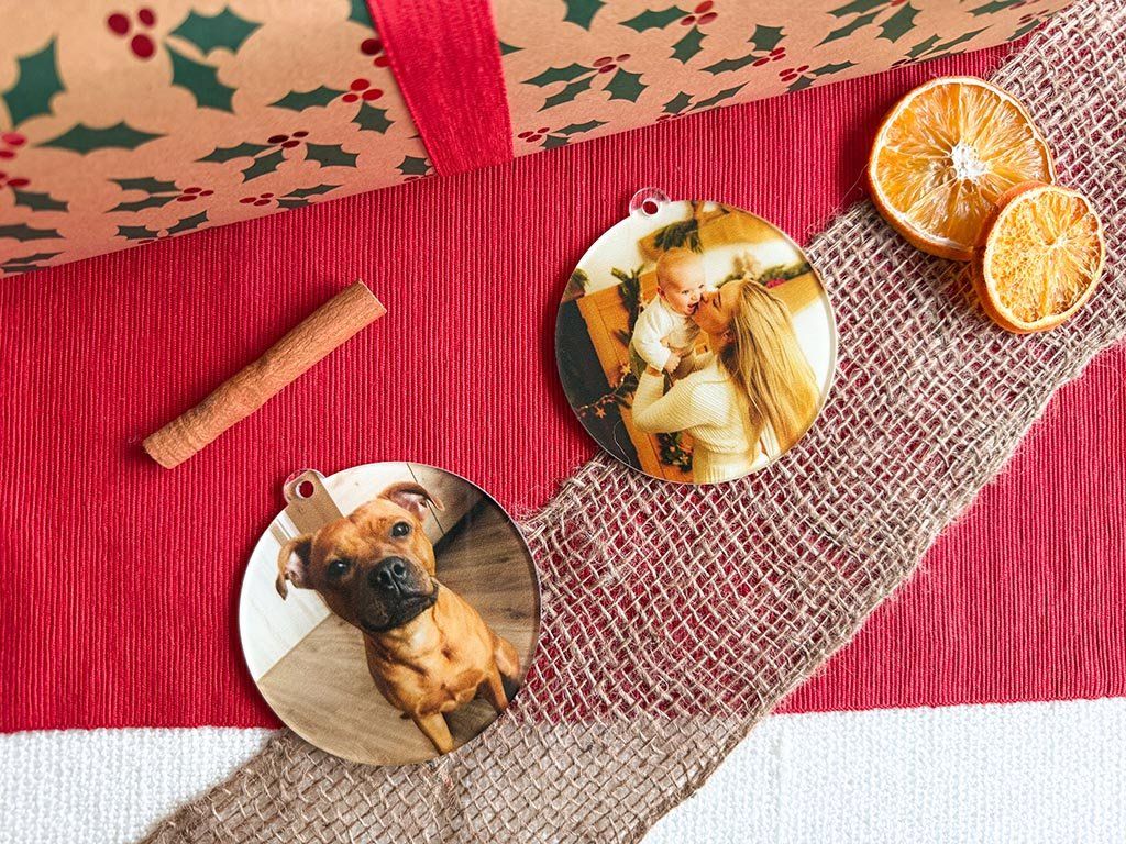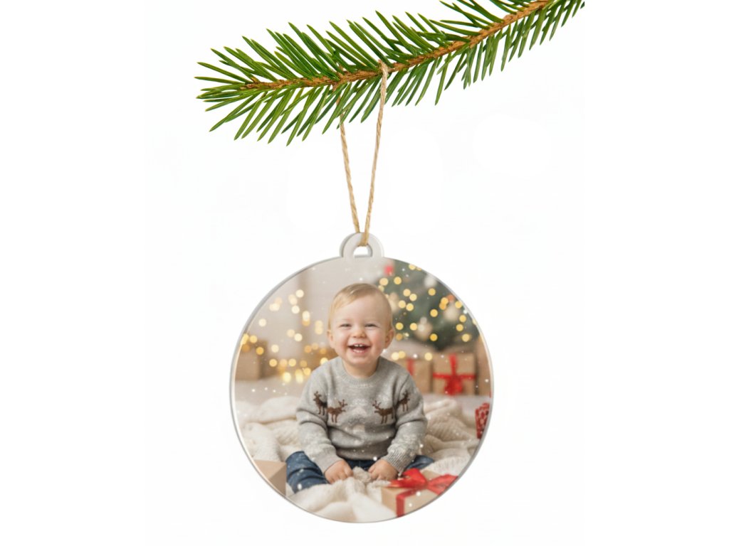 Premeňte svoje najkrajšie spomienky na kúzelnú vianočnú ozdobu! Farebná akrylová banka s potlačou je ideálnou voľbou pre tých, ktorí chcú dodať svojmu stromčeku osobný nádych. Pomocou modernej UV tlačiarne na ňu prenesieme vašu fotografiu v dokonalých farbách a detailoch - vďaka tomu zostane potlač sýta, jasná a odolná po mnoho rokov.