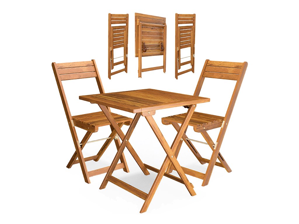 Praktický balkónový set sa skladá z jedného stola a dvoch stoličiek a je vyrobený z kvalitného masívneho akáciového dreva. Celý set je skladací, takže ho možno jednoducho uložiť a ušetriť miesto. Priestranná doska stola je ideálna na raňajky, kávu alebo posedenie s priateľmi na balkóne, terase aj v záhrade.