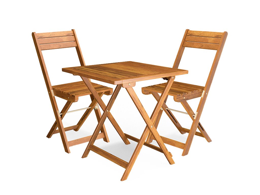 Balkónový set stola a dvoch stoličiek je vyrobený z kvalitného masívneho akáciového dreva. Set je skladací, takže ho možno jednoducho uložiť a ušetriť miesto. Priestranná doska stola je ideálna na raňajky, kávu alebo posedenie s priateľmi na balkóne, terase aj v záhrade.