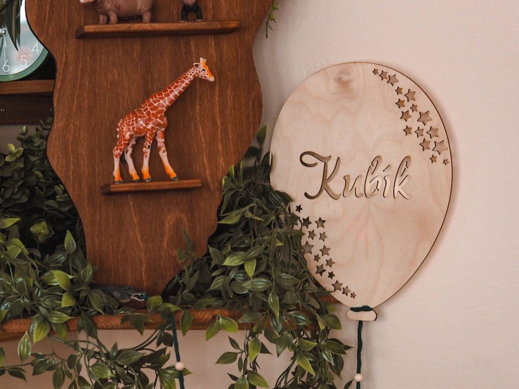 Originálna drevená dekorácia v podobe balónika s menom rozžiari nielen oči detí.