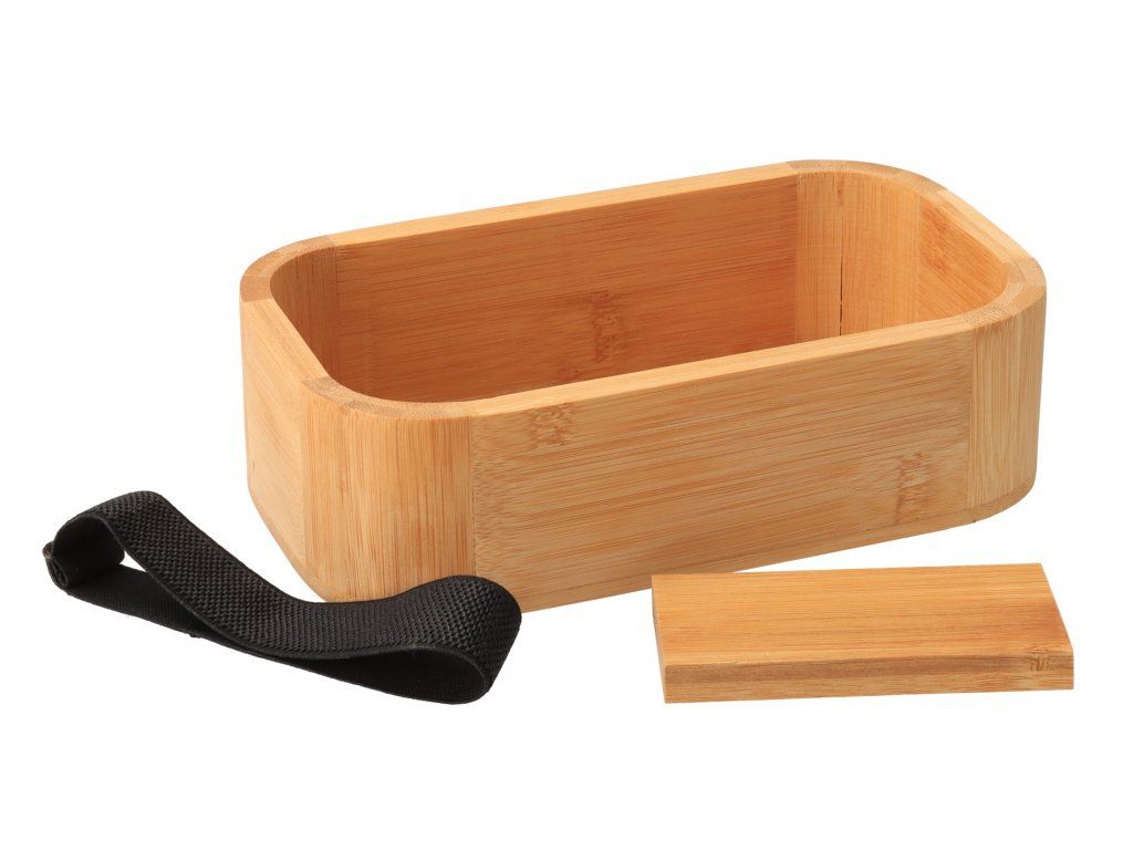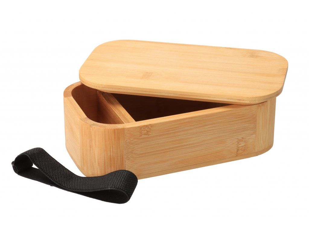 Praktická bambusová krabička na jedlo s vyberacím oddeľovačom a pevným nylonovým popruhom, do ktorej si môžete uložiť lahodnú desiatu alebo obed. Je určená prevažne na suché potraviny.