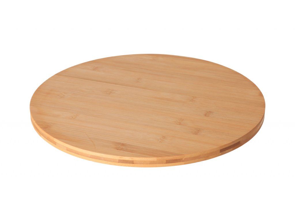 Otáčacia servírovacia krájacia doska z bambusového dreva. Okrúhle prevedenie je ideálne pre servírovanie rôznych pochutín. Má otočné ložisko, vďaka ktorému sa môže doska otáčať. Praktický a užitočný výrobok do každej kuchyne.