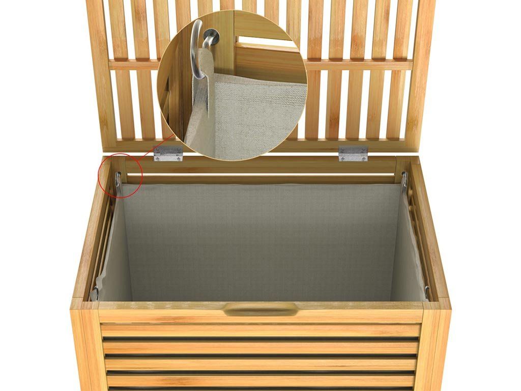 Praktický kôš na bielizeň z bambusu ponúka diskrétne a priestorovo úsporné riešenie na uloženie špinavej bielizne. Vyberateľná bavlnená vložka umožňuje jednoduchý prenos bielizne a jej pohodlné pranie.