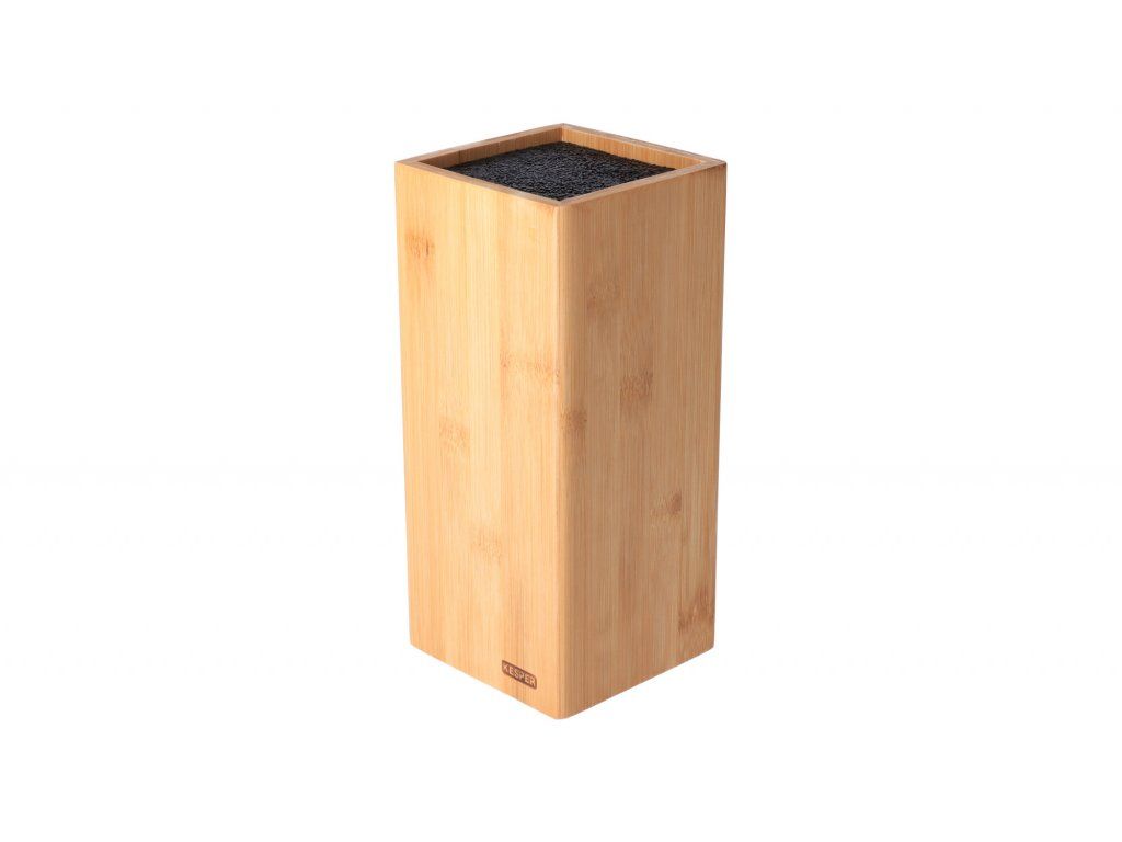 Stojan na nože je vyrobený z prírodného bambusového dreva, ktoré sa vyznačuje kvalitou a trvanlivosťou a zaručuje skvelý vzhľad produktu po mnoho rokov. Stojan je vyplnený plastovými štetinami, do ktorých možno nože ľahko zabodnúť. Štetiny sú vyberateľné, takže ich môžete bez problémov umyť. Stojan vyzerá veľmi elegantne a celkom iste si nájde miesto v každej kuchyni.
