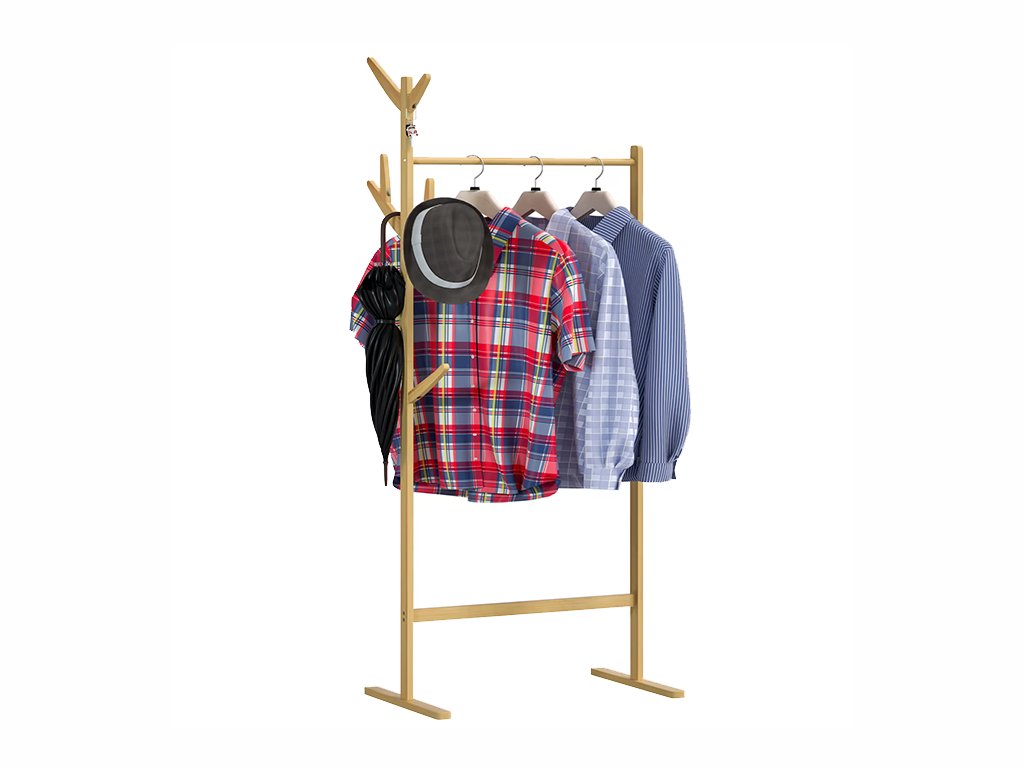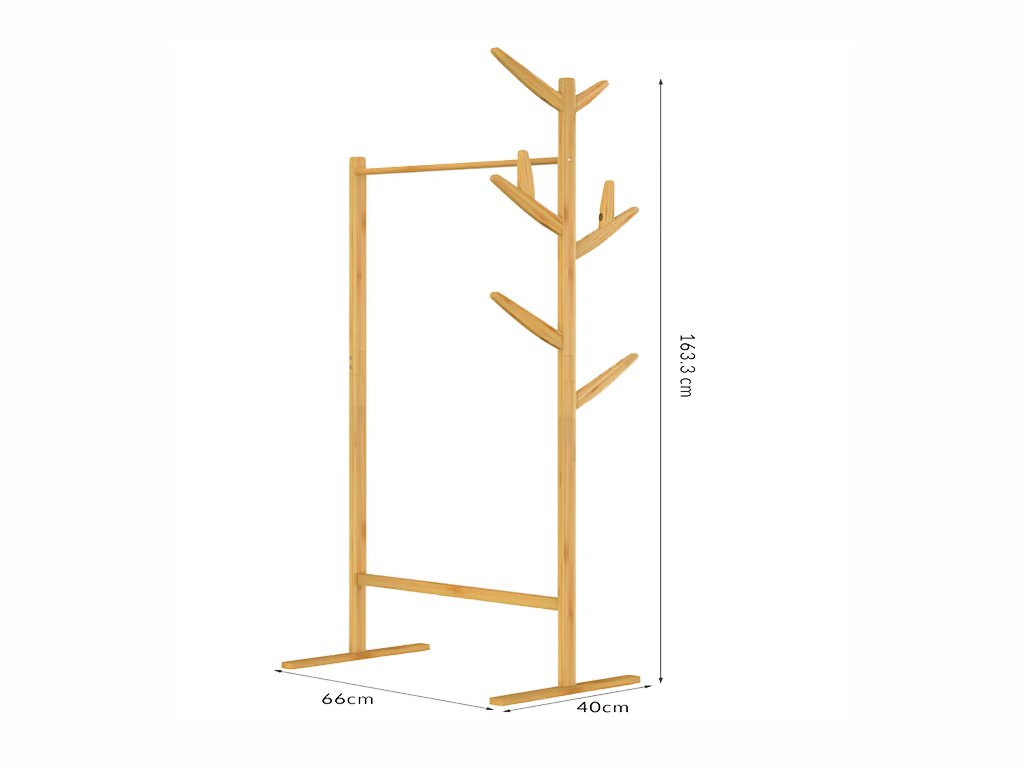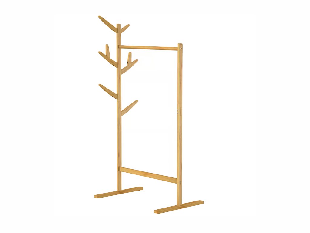 Prírodný bambusový stojan na oblečenie ponúka dostatok miesta pre vaše kabáty, bundy aj doplnky a zároveň nezaberá veľa miesta. Vďaka háčikom a klasickej šatníkovej tyči poskytuje praktické riešenie na každodenné použitie v predsieni, spálni aj šatníku.
