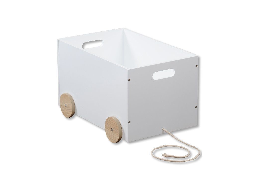Praktický box na hračky, ktorý bude ozdobou každej detskej izbičky. Truhla je v tvare autíčka, ktoré môžu deti vďaka kolieskam a povrázku ťahať za sebou.