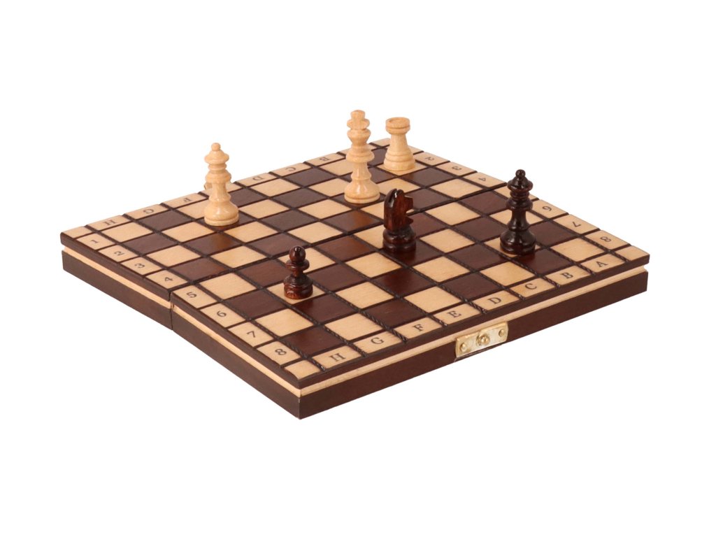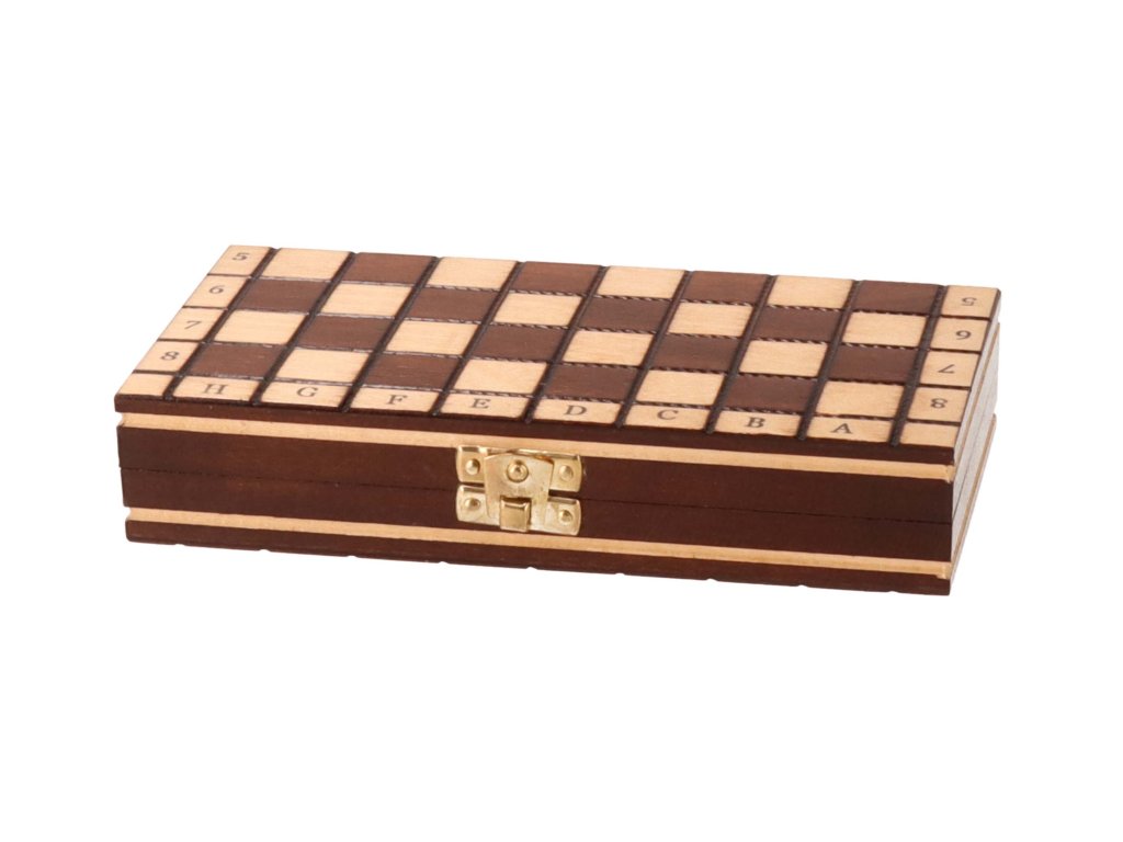 Malý drevený šach je ideálnym spoločníkom na dlhé cestovanie. Figúrky sú bezpečne uložené v drevenej krabičke, ktorá sa vďaka svojmu rozmeru pohodlne zmestí do každého batohu.