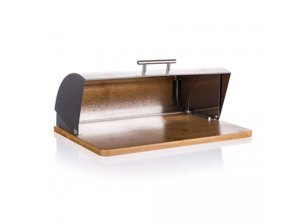Základňa chlebníka je vyrobená z bambusového dreva a veko z nerezu.