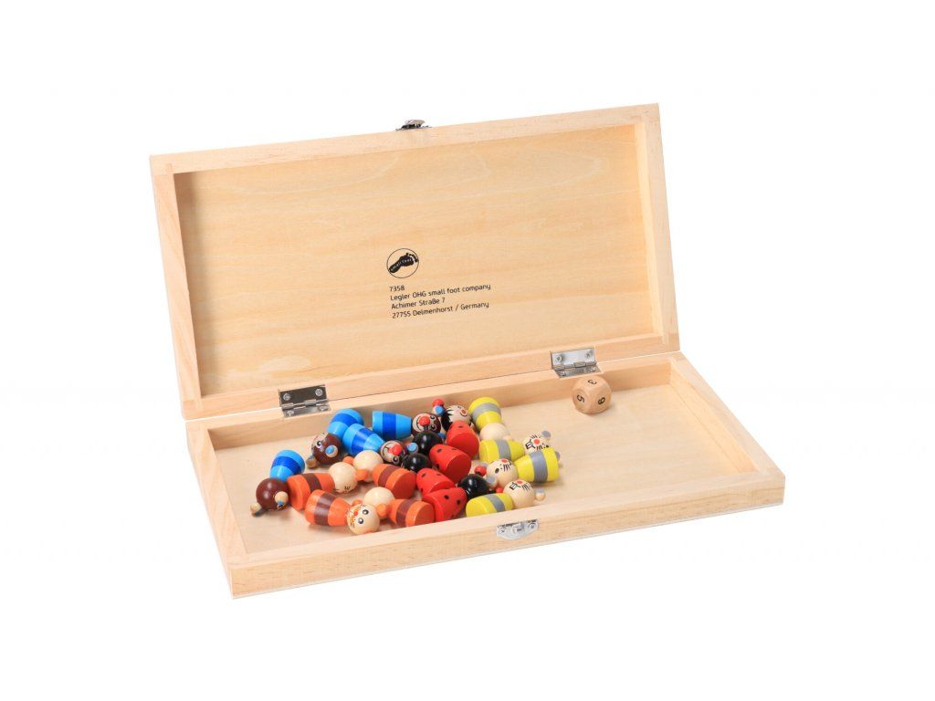 Balenie obsahuje hraciu dosku, zvieracie figúrky a kocku na hranie s číslami. Všetko je bezpečne uložené v drevenej krabici a umožní vám hru pohodlne zbaliť na cesty alebo na chalupu.
