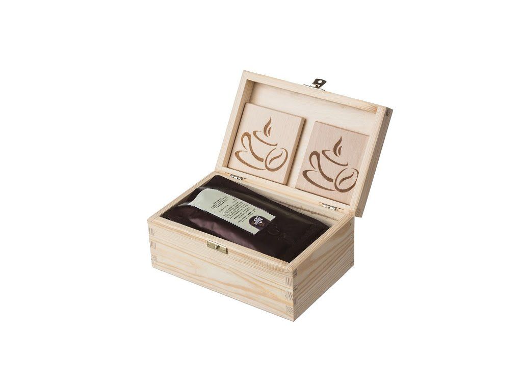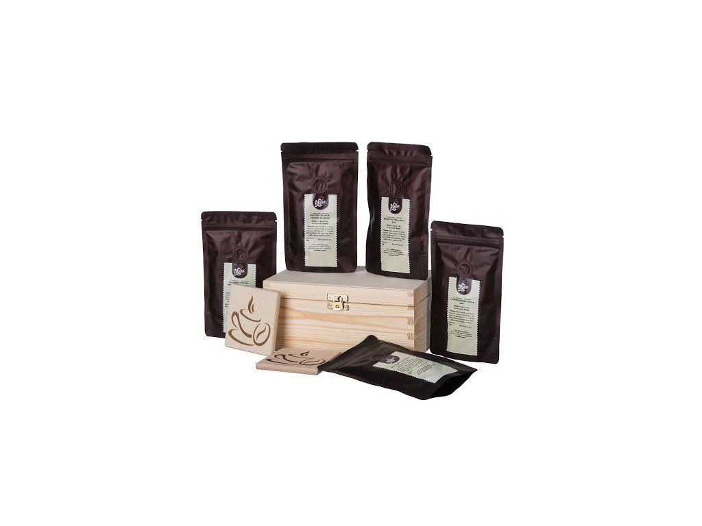 V spolupráci s Manu Café sme pre vás vytvorili štýlové darčekové balenie zrnkovej kávy z celého sveta. Súčasťou balíčka je aj drevená krabička a dva drevené podtácky s gravírovaním.