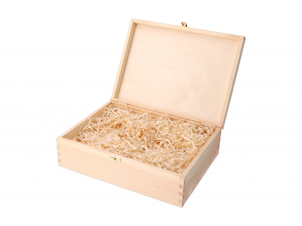 Drevená krabička s vlnou je ideálnym riešením na zabalenie darčeka. Je pripravená na okamžité použitie, vonia drevom a prírodou, ale najdôležitejšie je, že po rozbalení neskončí v koši ako papier.
