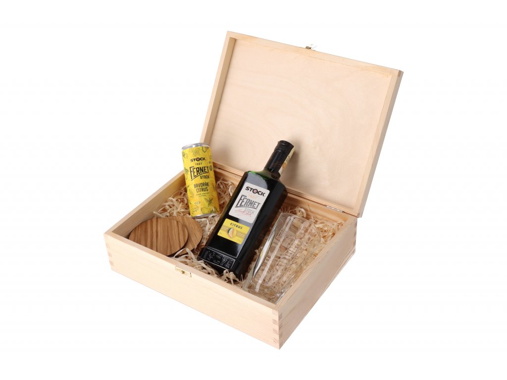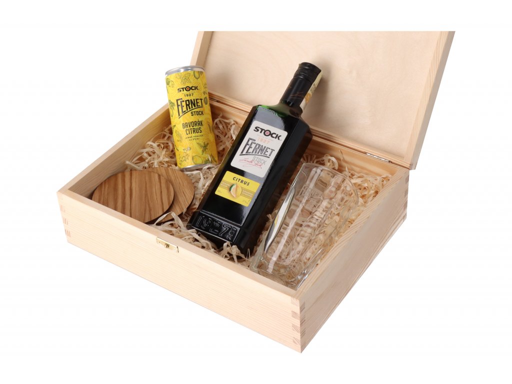 Originálna darčeková súprava Fernet Stock Citrus v drevenej krabičke na mieru poteší narodeninových oslávencov, jubilantov, ale radosť urobí každému, na kom vám záleží a chcete mu to dať najavo. Vhodnejší darček jednoducho nenájdete!