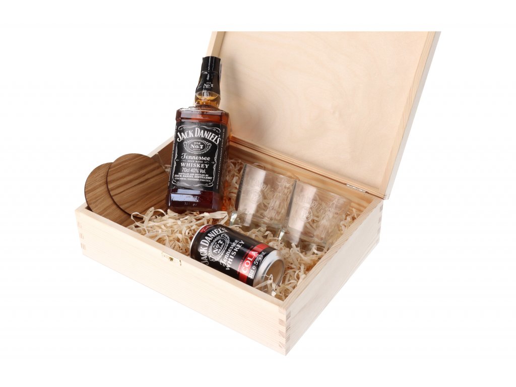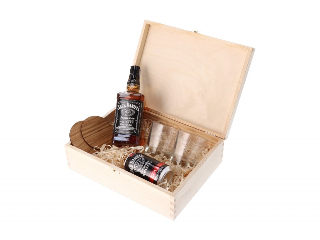 Kvalitná whiskey je ideálny darček pre mužov, ktorý vedia oceniť dobré pitie. V drevenej krabičke upravenej na mieru nájdete okrem fľaše aj dva originálne poháre.