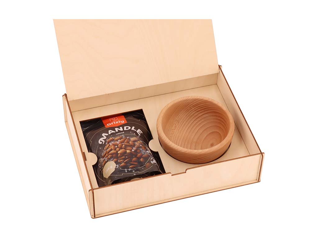 Drevená miska plná orieškov sa hodí v každej situácii. Darujte ju elegantne zabalenú v krabičke na mieru a my vám sľubujeme, že tento darček vykúzli obdarovanému úsmev na tvári.