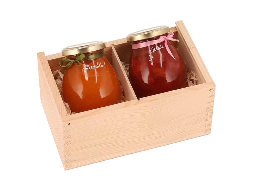 Balenie kvalitných džemov v drevenej krabičke je dokonalý darček pre každú príležitosť. Drevenú krabičku pre vás doplníme gravírovaným textom aj obrázkom a vytvoríme tak originálny darček, ktorý zaručene poteší každého milovníka dobrého jedla.