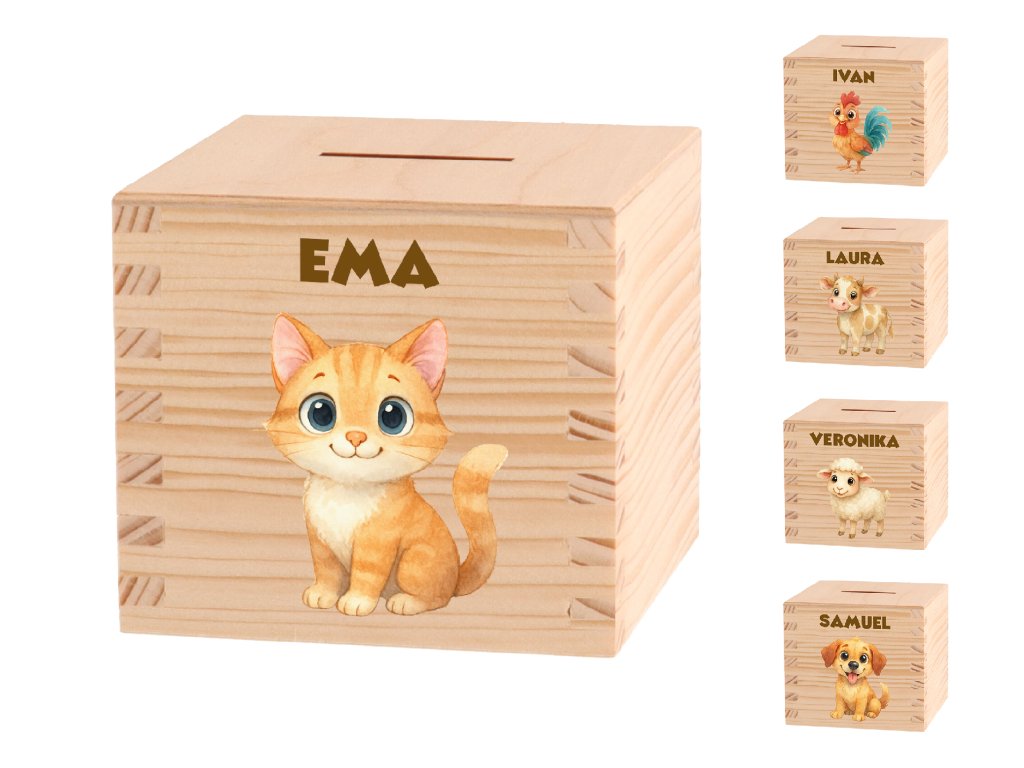 Pokladnička z dreva s menom a farebným zvieratkom poteší ako darček k narodeninám, na Vianoce alebo ako odmena za prvé vysvedčenie v škole. Učte svoje deti finančnej gramotnosti zábavnou formou.