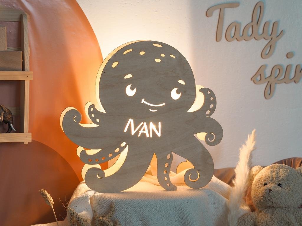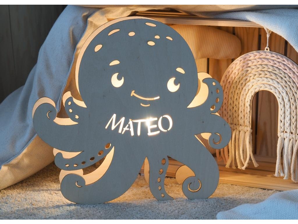 Nástenné LED svietidlo s menom a roztomilým motívom chobotničky si deti zamilujú. Lampičku umiestnite kamkoľvek do detskej izby a vytvoríte tak zároveň aj štýlovú dekoráciu. Vďaka prírodnému vzhľadu sa hodí do každého typu interiéru. Dodávame s kvalitnou LED žiarovkou!