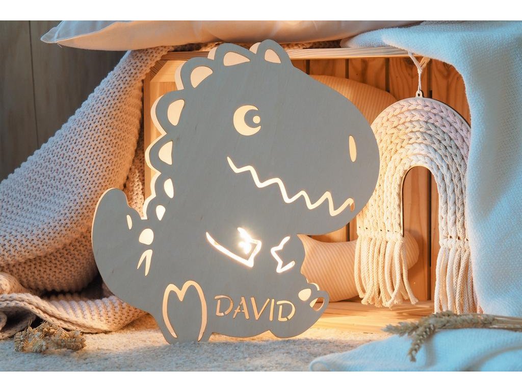 Dinosaurus na drevenej LED lampičke s menom pomôže deťom zahnať obavy z tmy a vytvorí v izbe útulnú atmosféru. Vďaka čisto prírodnému vzhľadu sa hodí do každého typu interiéru, kde bude štýlovou dekoráciou. Dodávame s kvalitnou LED žiarovkou!