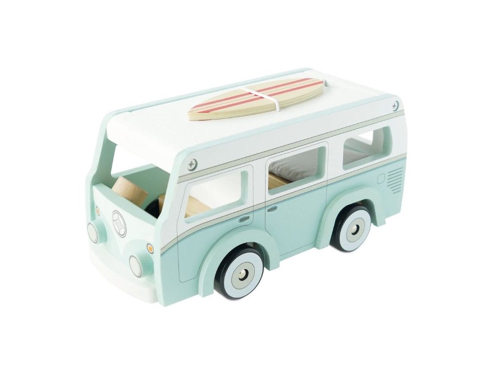 Letný karavan, s ktorým môžu deti cestovať, kam im fantázia dovolí. Balenie tiež obsahuje dosku na surfovanie, matrac a kuchynku. Auto má odnímateľnú strechu.