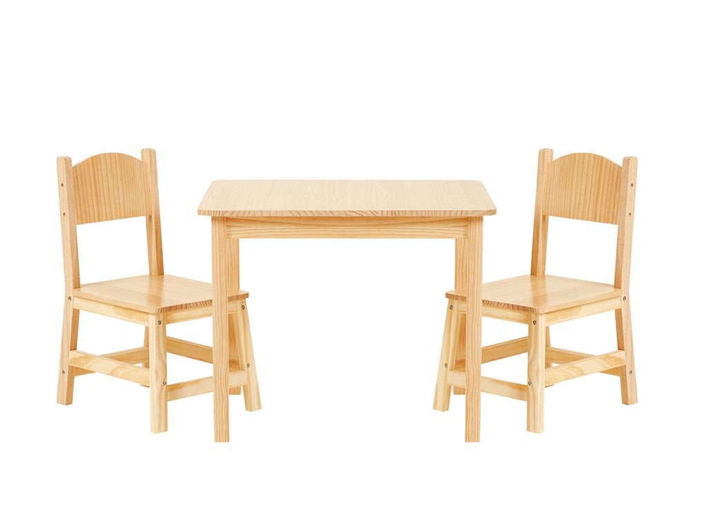 Každá malá umelkyňa aj začínajúci staviteľ potrebuje svoje vlastné miesto! Pevný drevený stôl poskytne dostatok priestoru na maľovanie, stavanie kociek, hranie s hračkami alebo napríklad prvé spoločné čajové večierky. Dve stoličky zaistia, že si deti môžu prizvať kamaráta alebo rodiča.