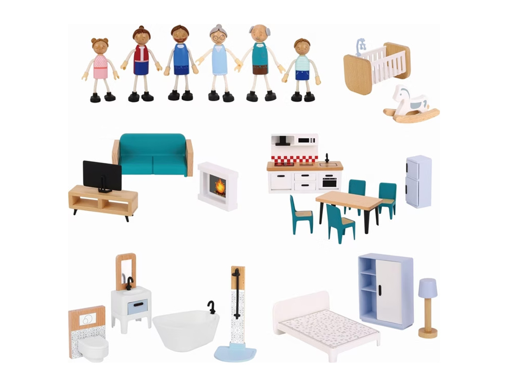 Domček je vybavený rôznymi miestnosťami, ktoré pripomínajú skutočný domov – nechýba obývačka, kuchyňa, kúpeľňa ani spálňa. Súčasťou sú aj figúrky a nábytok, vďaka ktorým môžu deti okamžite začať vytvárať vlastné príbehy a situácie. Hra podporuje fantáziu, kreativitu a rozvíja sociálne zručnosti pri spoločnom hraní.