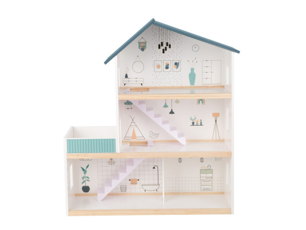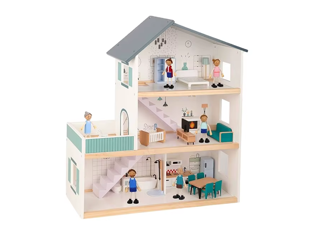 Vytvorte si s deťmi svet plný príbehov a dobrodružstiev. Priestranný drevený domček pre bábiky ponúka niekoľko poschodí a izieb, v ktorých môžu deti rozohrať každodenný rodinný život aj vlastné fantazijné scenáre. Vďaka otvorenému dizajnu je domček dobre prístupný zo všetkých strán, takže sa s ním môžu pohodlne hrať aj viaceré deti naraz.