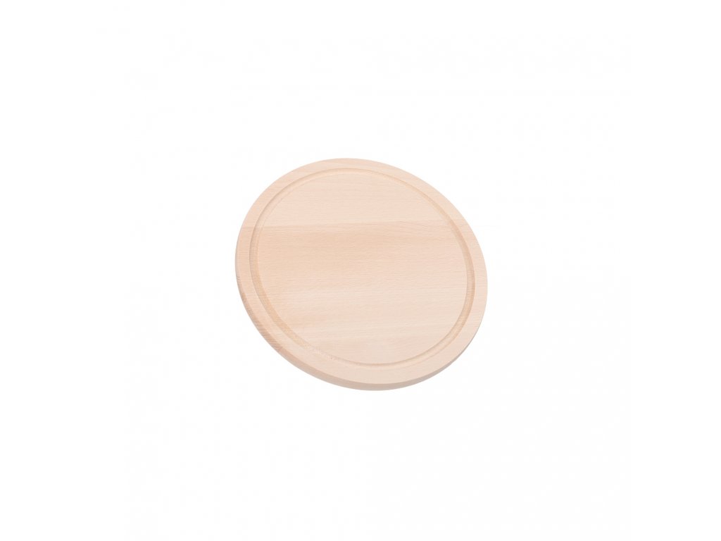 Okrúhla doska z bukového dreva je v kuchyni takmer nutnosť. Po hranách je odtokový kanálik, ktorý príde vhod pri práci s tekutinou, ktorú by ste neradi videli na inej ploche, ako na doske.