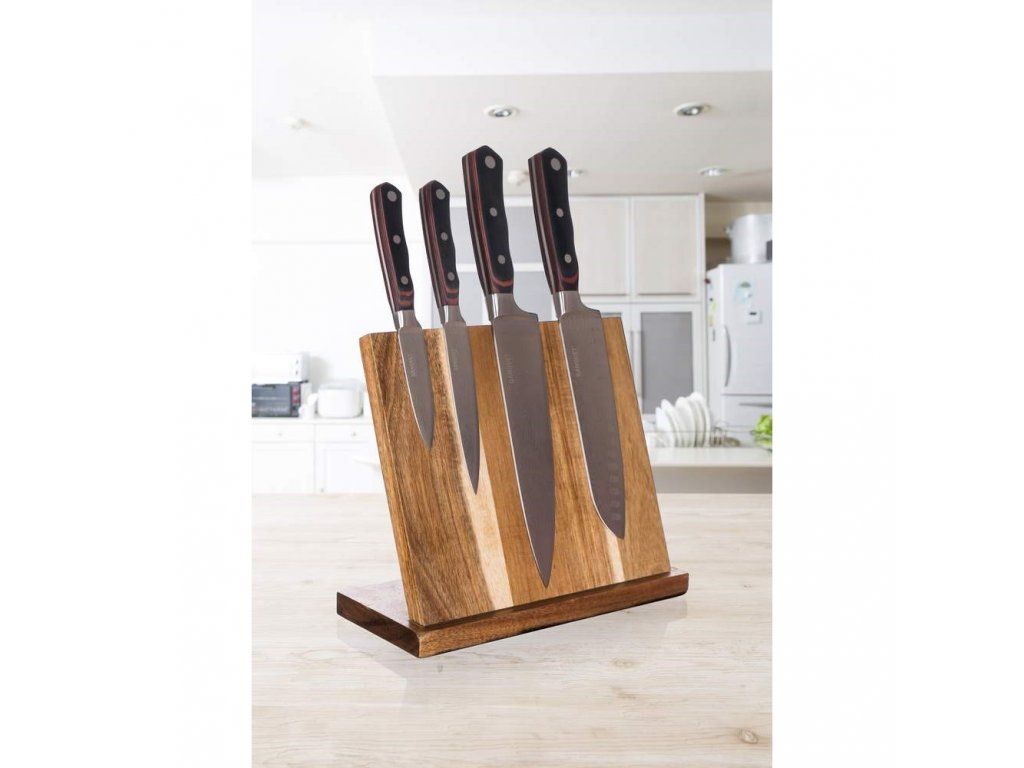 Magnetický stojan na nože vám umožní bezpečný a ľahký prístup k nožom.