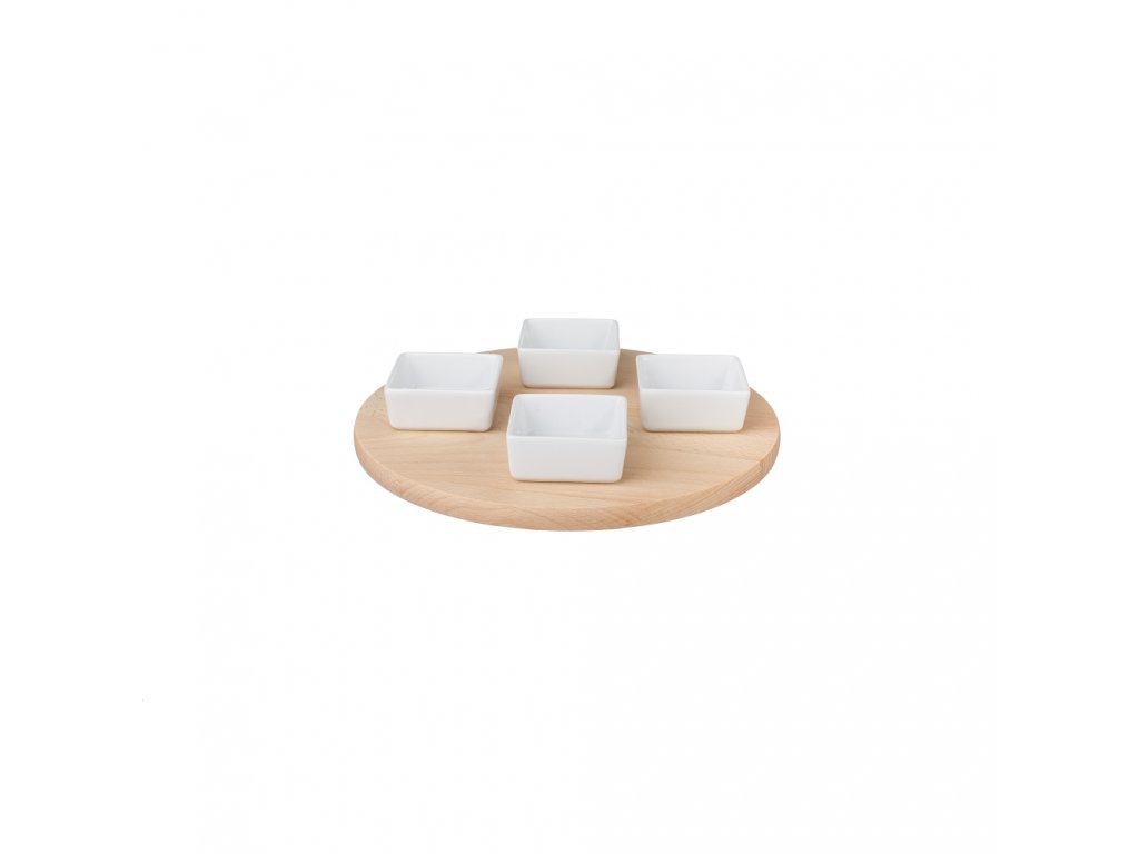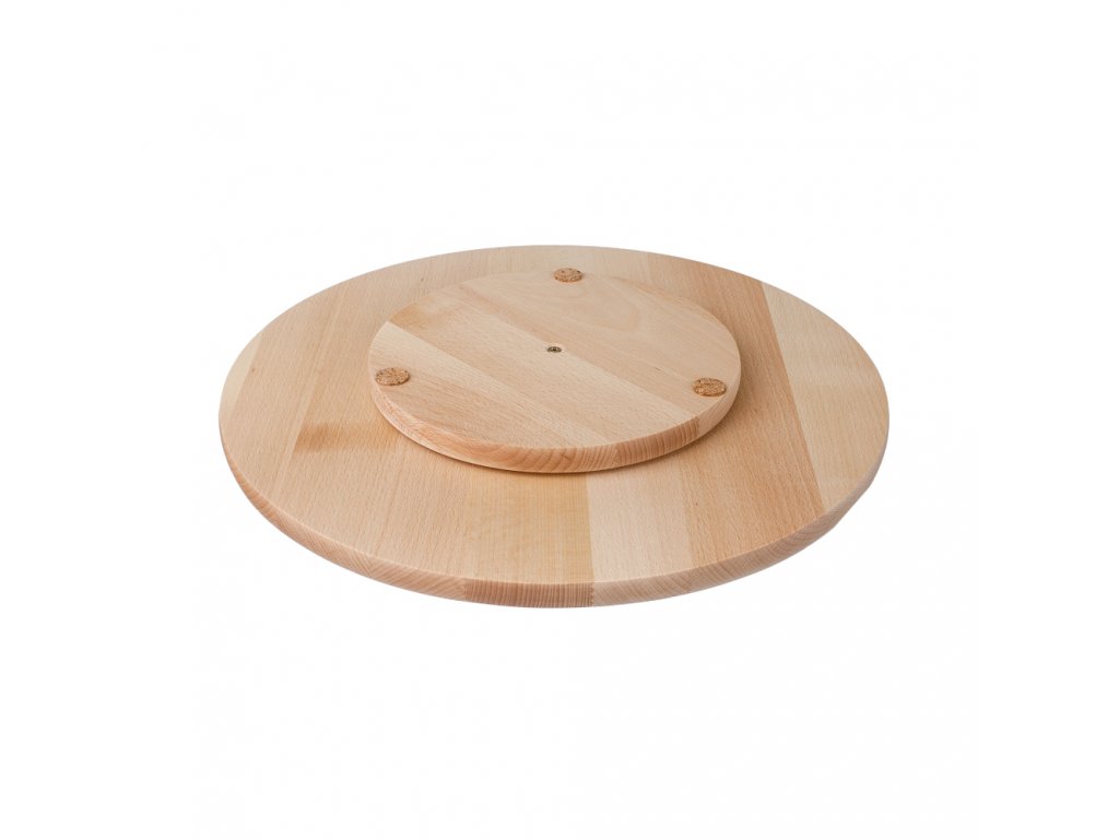 Servírovanie pomocou otáčajúcej dosky z bukového dreva pôsobí na stole veľmi originálne a poskytuje všetkým hosťom rovnaký komfort v dostupnosti ich obľúbených slaných a sladkých dobrôt.