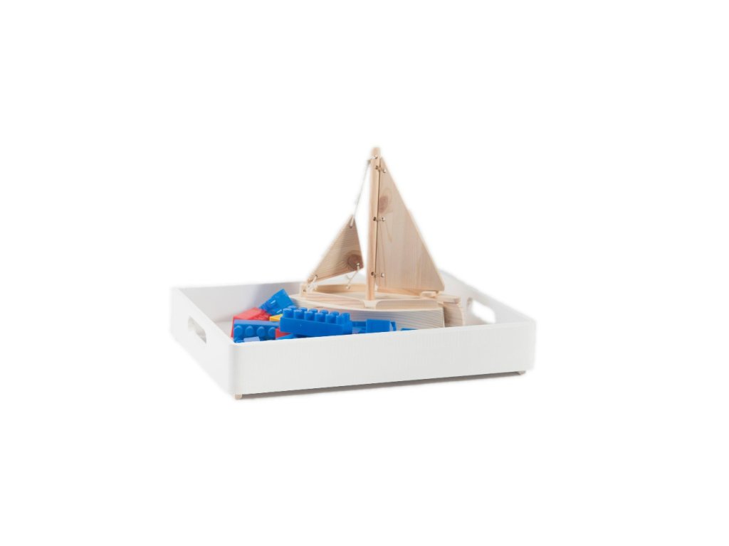 Biela drevená debnička sa dá skvelo využiť ako podnos na prenášanie vecí, ale taktiež na uloženie rôznych drobností.
