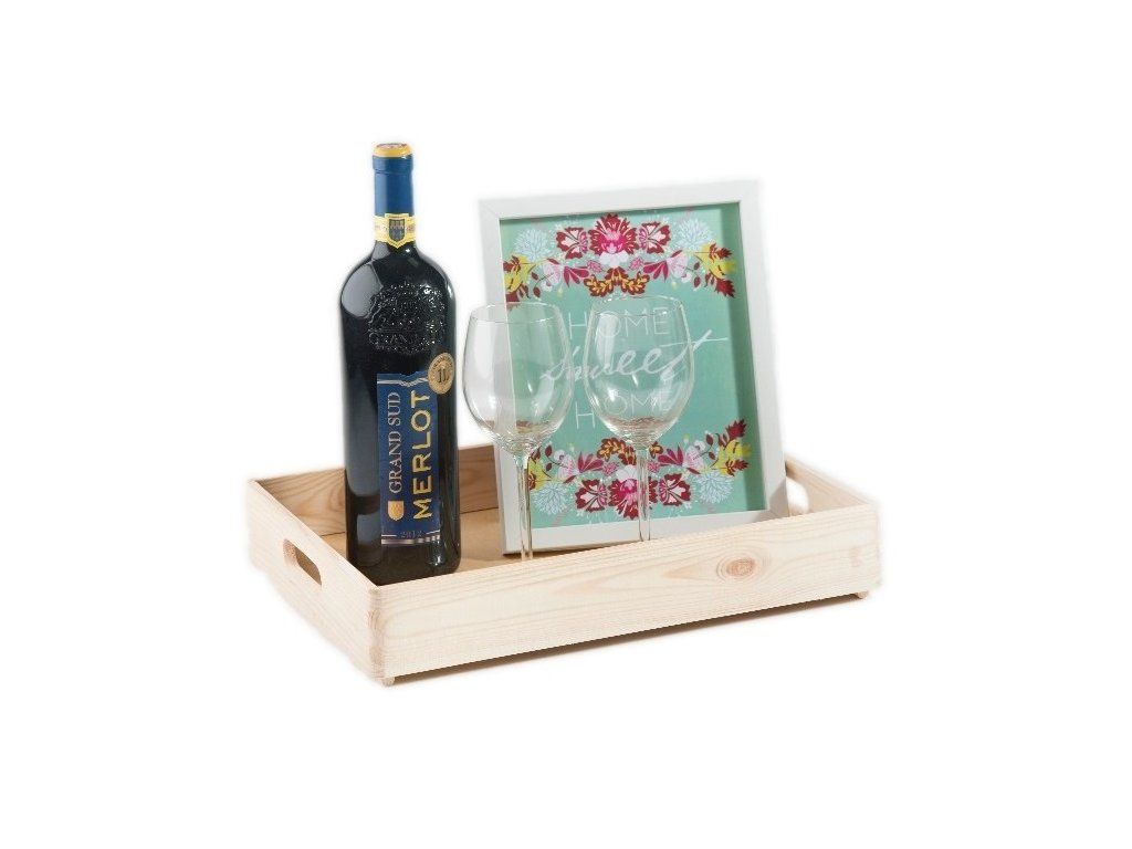 Moderná debnička v prírodnej farbe, ktorú môžete využiť na prenášanie drobných vecí alebo napríklad ako tácku do postele.