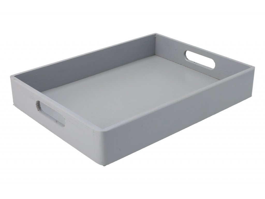 Šedá drevená debnička sa dá skvelo využiť ako tácka na prenášanie drobných vecí, ale taktiež na uloženie rôznych vecí.