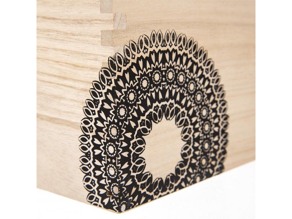 Dekoratívna drevená debnička s motívom mandaly sa hodí napríklad ako úschovňa cenností. Vďaka svojmu štýlu si nájde svoje miesto v každom interiéri.