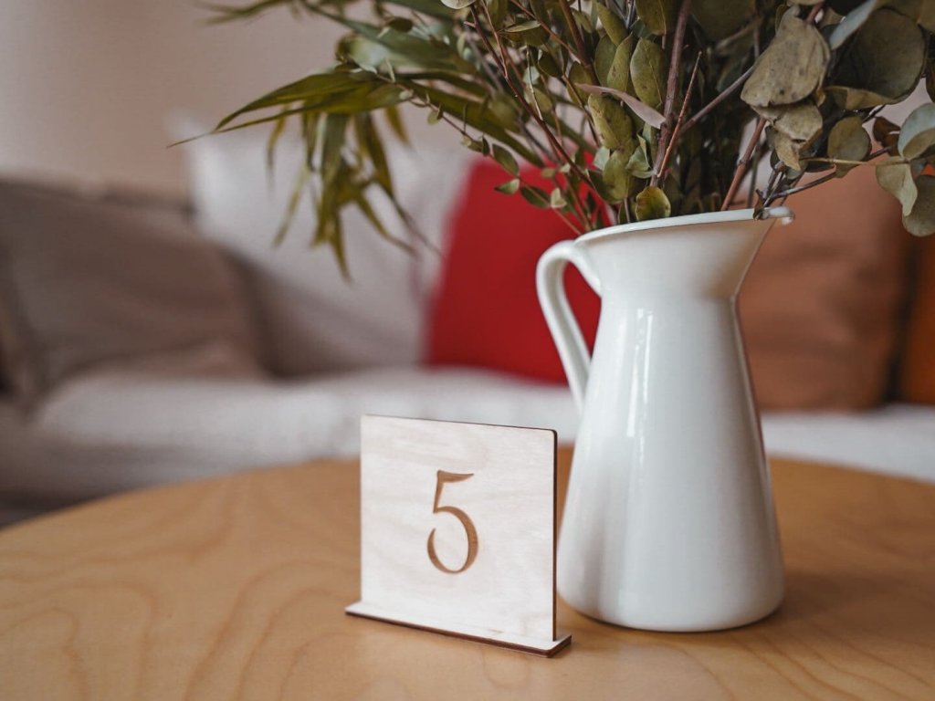 Drevená ceduľka na stôl vyrezaná z preglejky. Vhodná na stôl do vašej reštaurácie alebo ako menovka.