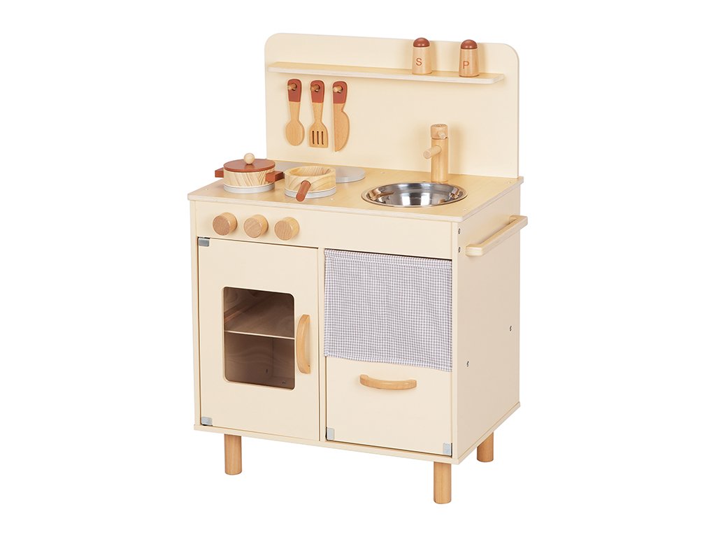 Varenie je zábava! Detská drevená kuchynka s príslušenstvom je dokonalý darček pre malých kuchárov. Bezpečným spôsobom umožňuje deťom vžiť sa do role dospelákov a pritom si zdokonaliť svoju predstavivosť aj motoriku.