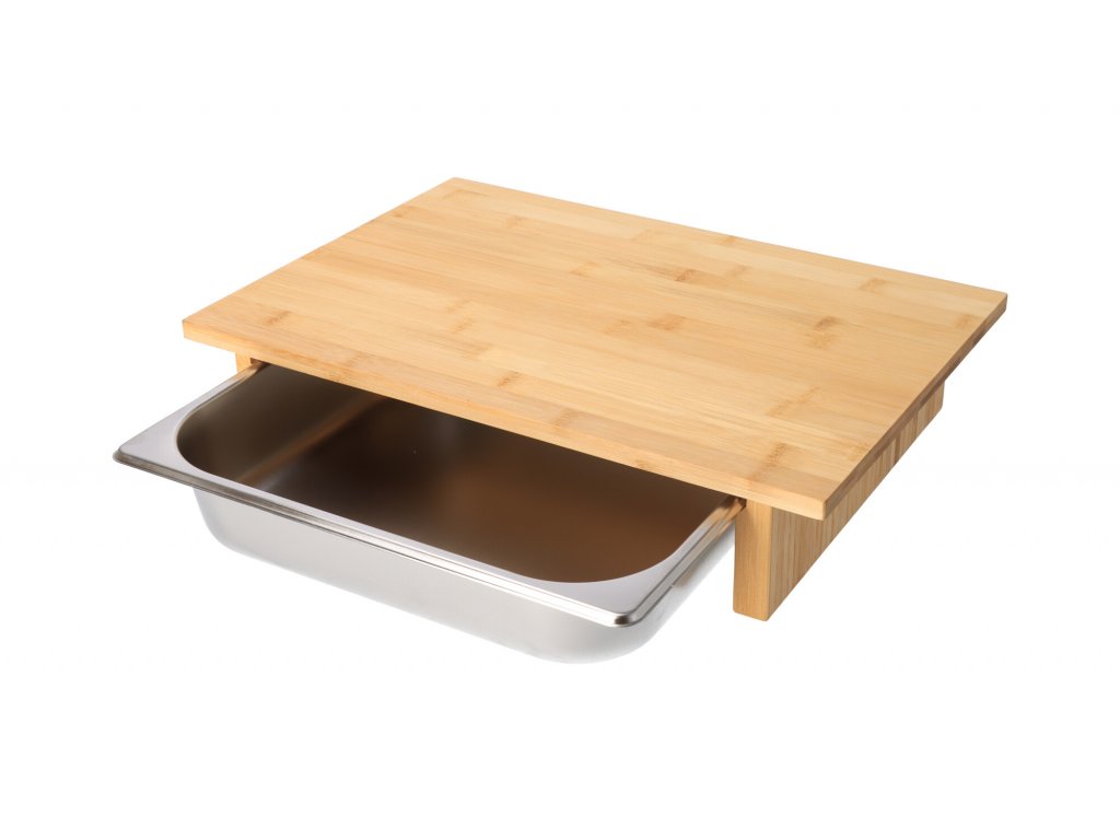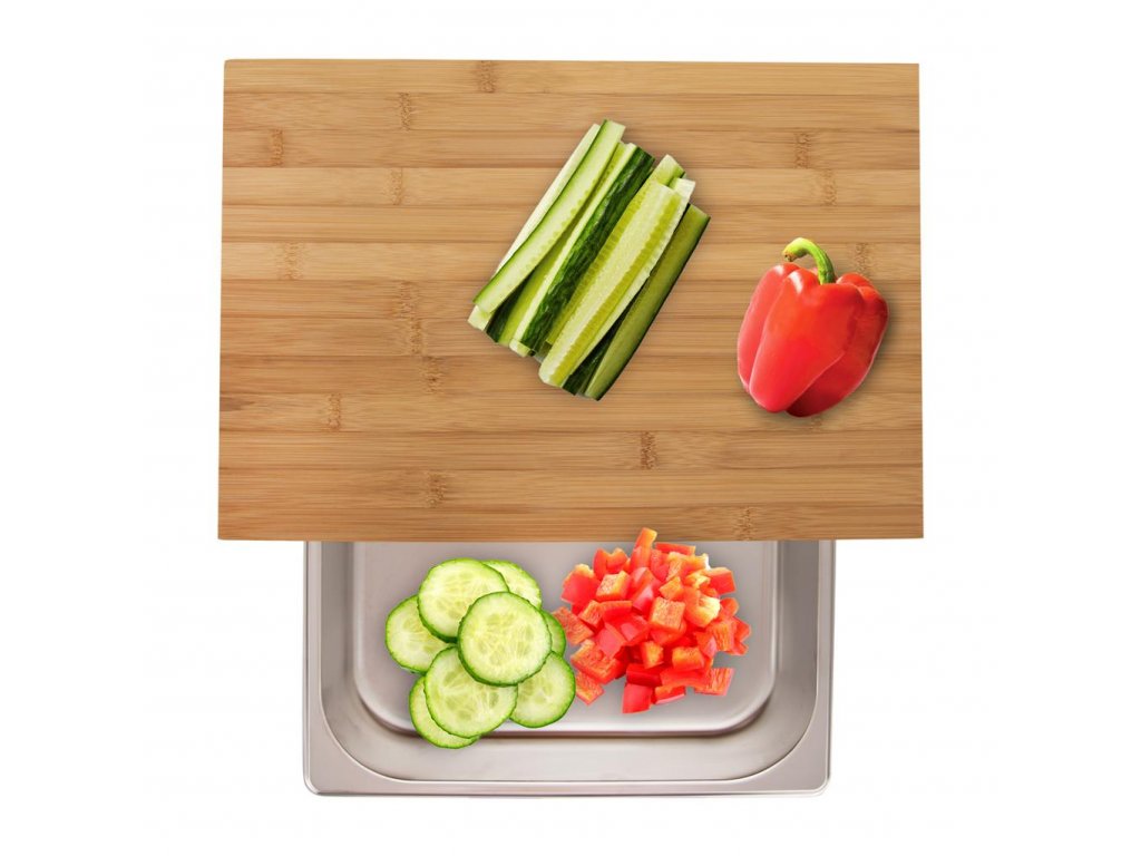 Bambusová doska s praktickou antikorovou miskou je skvelým pomocníkom, ktorého budete mať pri krájaní radi pri ruke. Do misky potom všetko jednoducho zhrniete.