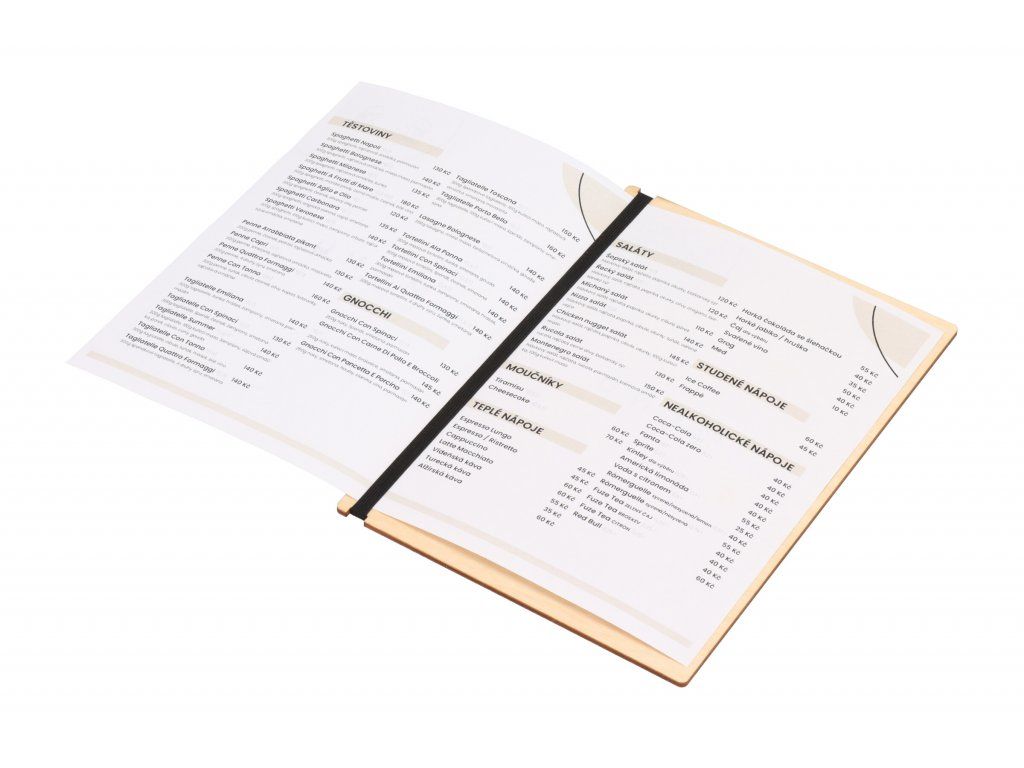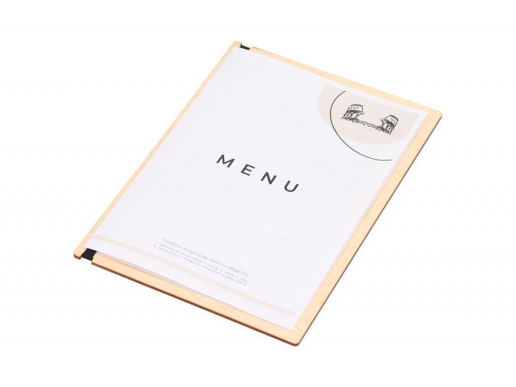 Jedálny lístok stačí vytlačiť a vložiť za pevnú gumu. Keď sa zašpiní alebo poškodí, môžete ho ihneď vymeniť za nový, takže každý zákazník dostane elegantnú kartu menu.