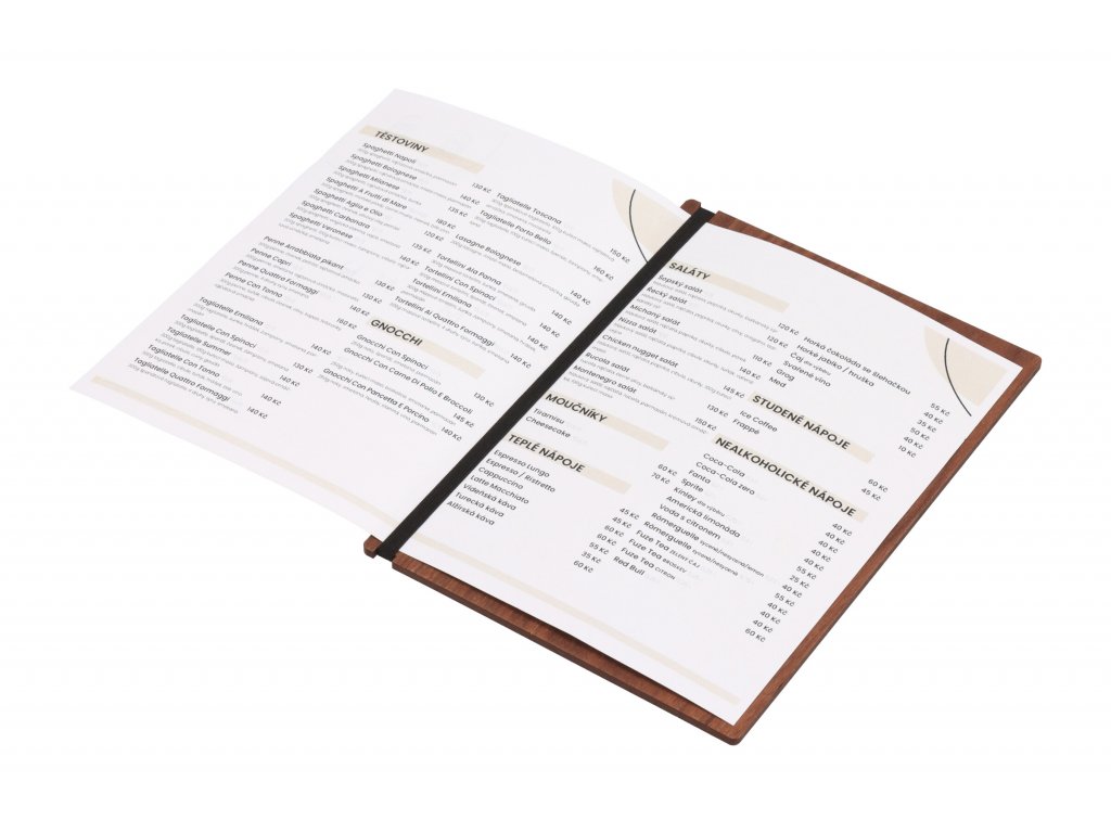 Jedálny lístok stačí vytlačiť a vložiť za pevnú gumu. Keď sa zašpiní alebo poškodí, môžete ho ihneď vymeniť za nový, takže každý zákazník dostane elegantnú kartu menu.