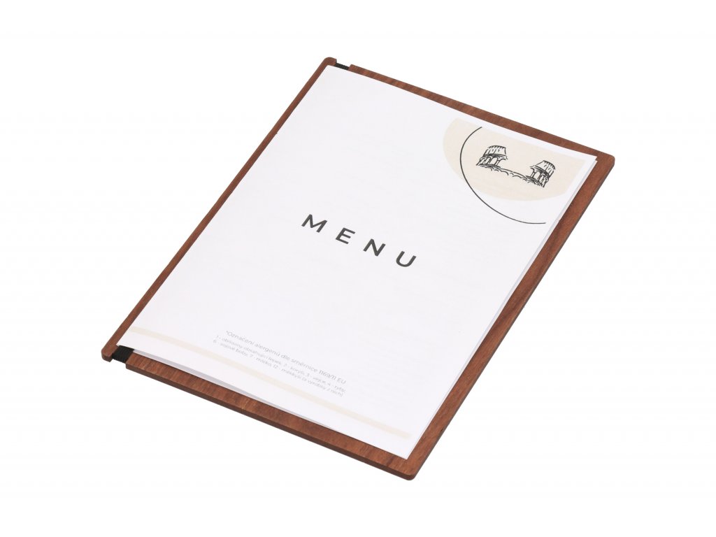 Drevená doska na menu A4 z preglejky amerického orecha nielenže na stole vyzerá skvele, ale je tiež veľmi praktická, ľahká a nezaberá toľko miesta ako tradičné jedálne lístky.