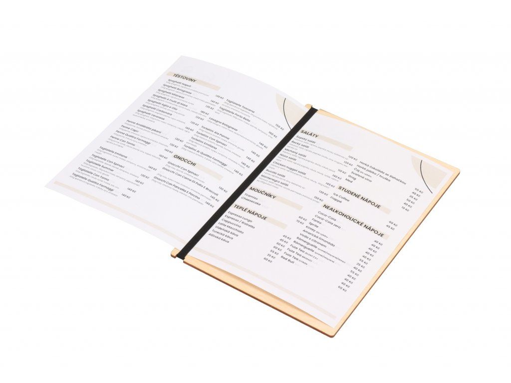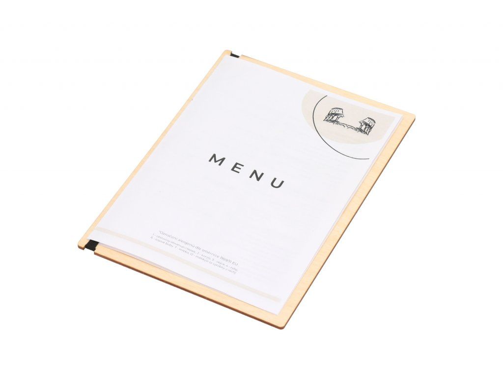 Jedálny lístok stačí vytlačiť a vložiť za pevnú gumu. Keď sa zašpiní alebo poškodí, môžete ho ihneď vymeniť za nový, takže každý zákazník dostane elegantnú kartu menu.