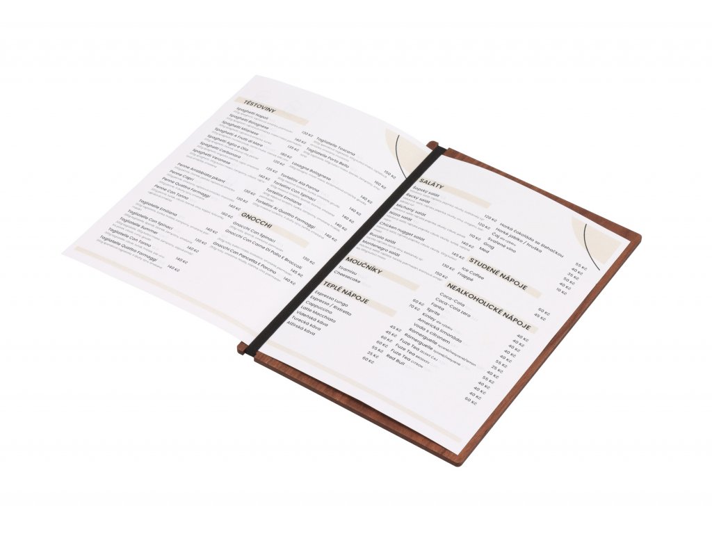 Jedálny lístok stačí vytlačiť a vložiť za pevnú gumu. Keď sa zašpiní alebo poškodí, môžete ho ihneď vymeniť za nový, takže každý zákazník dostane elegantnú kartu menu.
