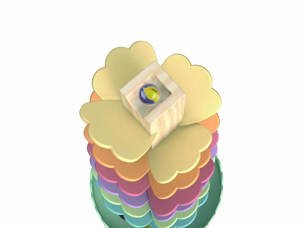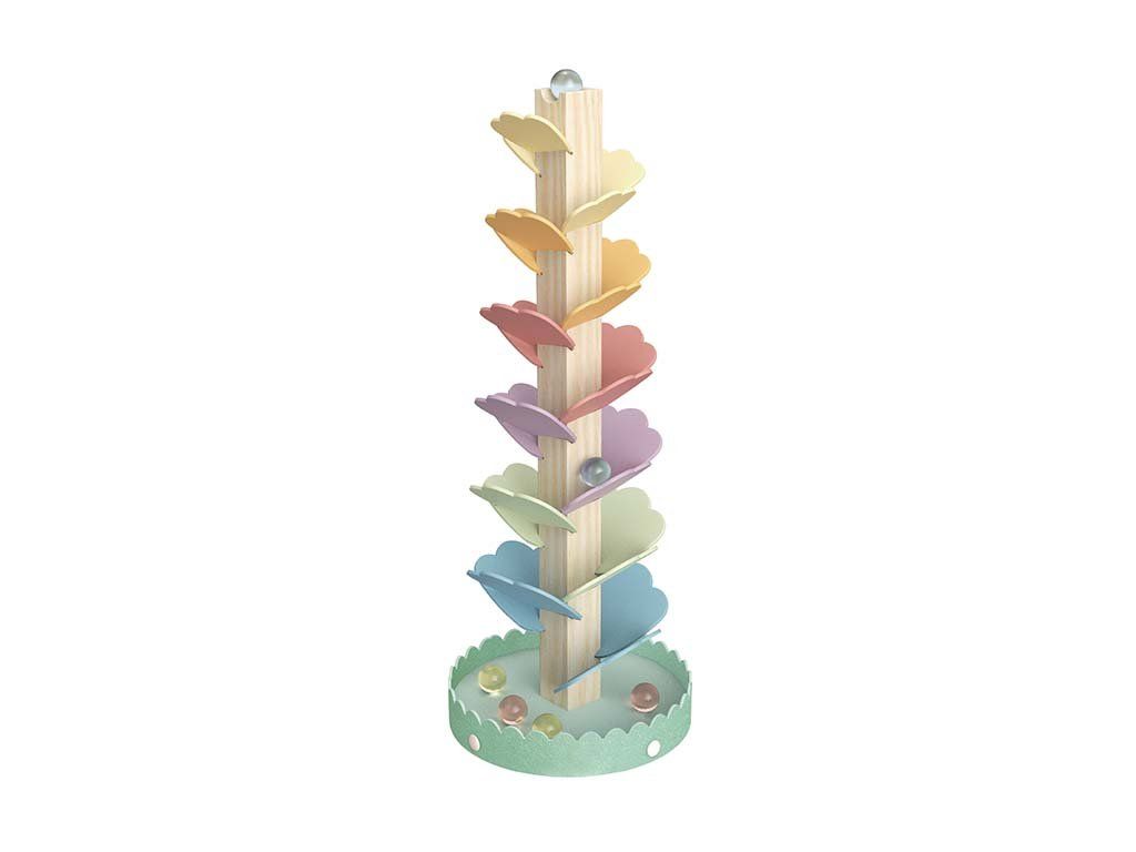 Originálna drevená veža zaujme deti na prvý pohľad svojimi farebnými lístkami a kúzelným zvukovým efektom. Stačí pustiť guľôčku z vrchu a sledovať, ako plynule schádza dole, pričom každý lístok vydáva iný tón.