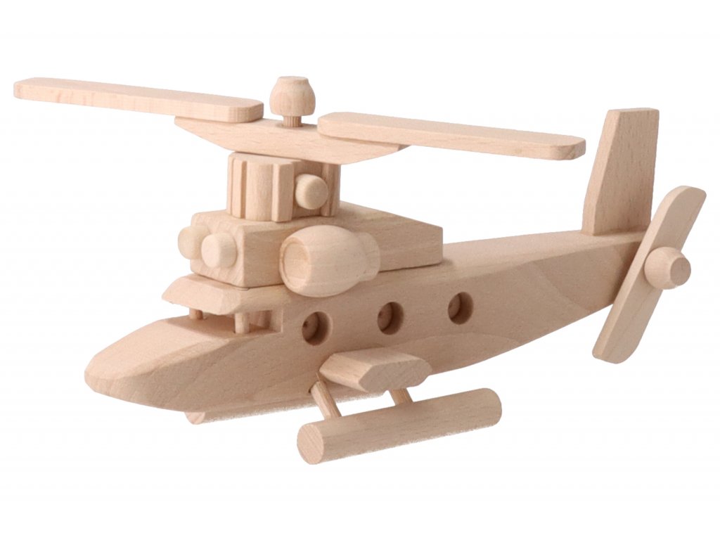 Drevený model vrtuľníka je obľúbená hračka pre chlapcov všetkých vekových kategórií. Povrch je úplne prírodný, vrtuľa sa otáča a pomocou farieb môžete vytvoriť hračku alebo originálnu dekoráciu podľa vašich predstáv.