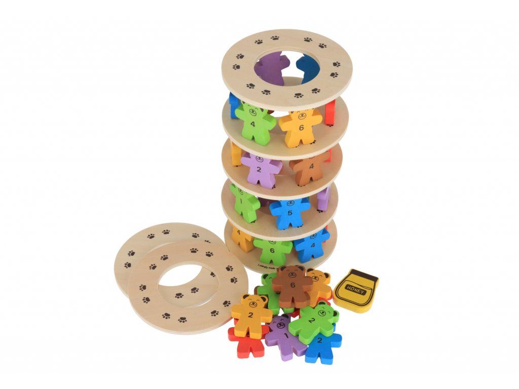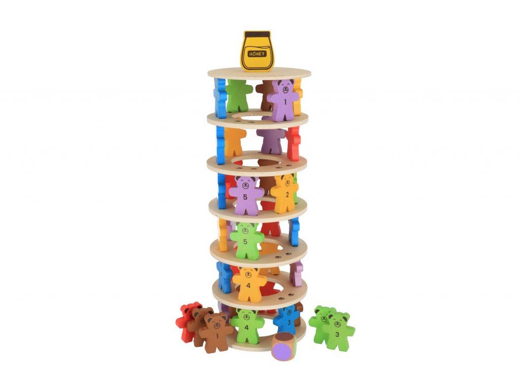 Pravidlá sú jednoduché. Farba na kocke určuje, ktorého medvedíka budete musieť vytiahnuť z veže. Hra končí, pokiaľ jeden z hráčov zhodí nádobu s medom.