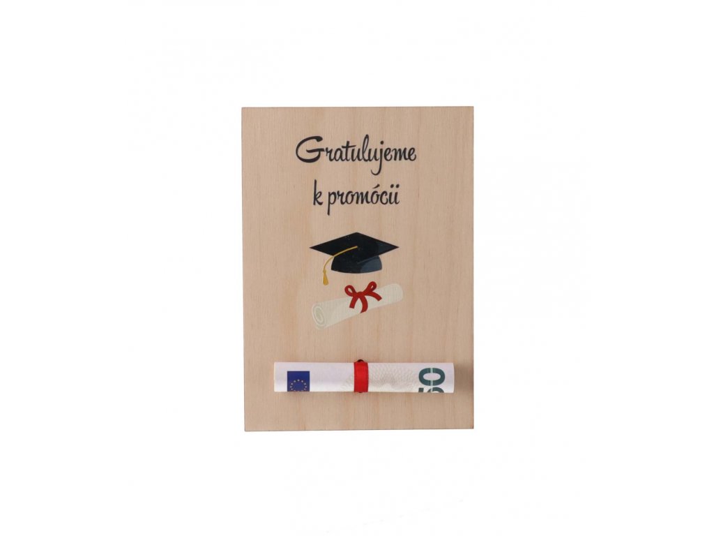 Drevená karta na peniaze - Gratulujeme k promócii