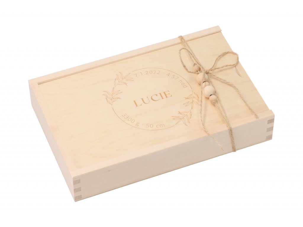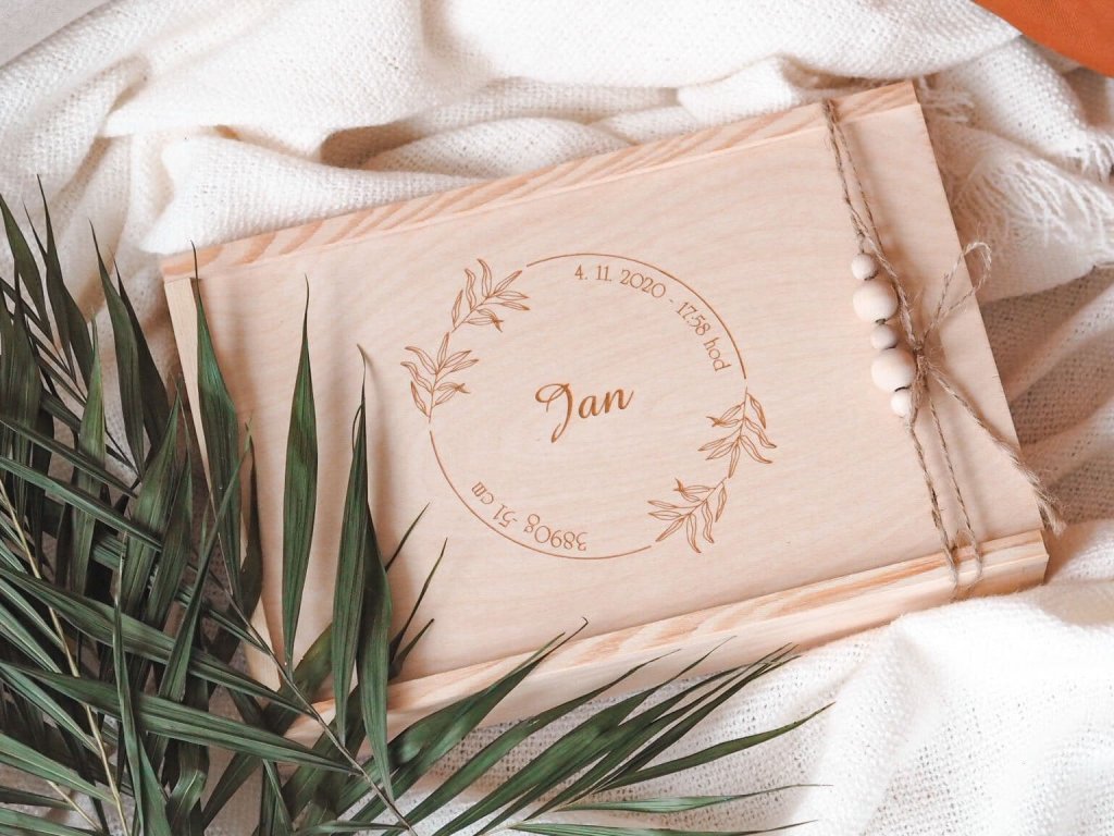 Uchovajte si spomienky na jeden z najšťastnejších okamihov vášho života a kúpte si originálnu krabičku s vypáleným menom a ďalšími údajmi o bábätku, do ktorej si môžete uložiť napríklad prvé fotografie.