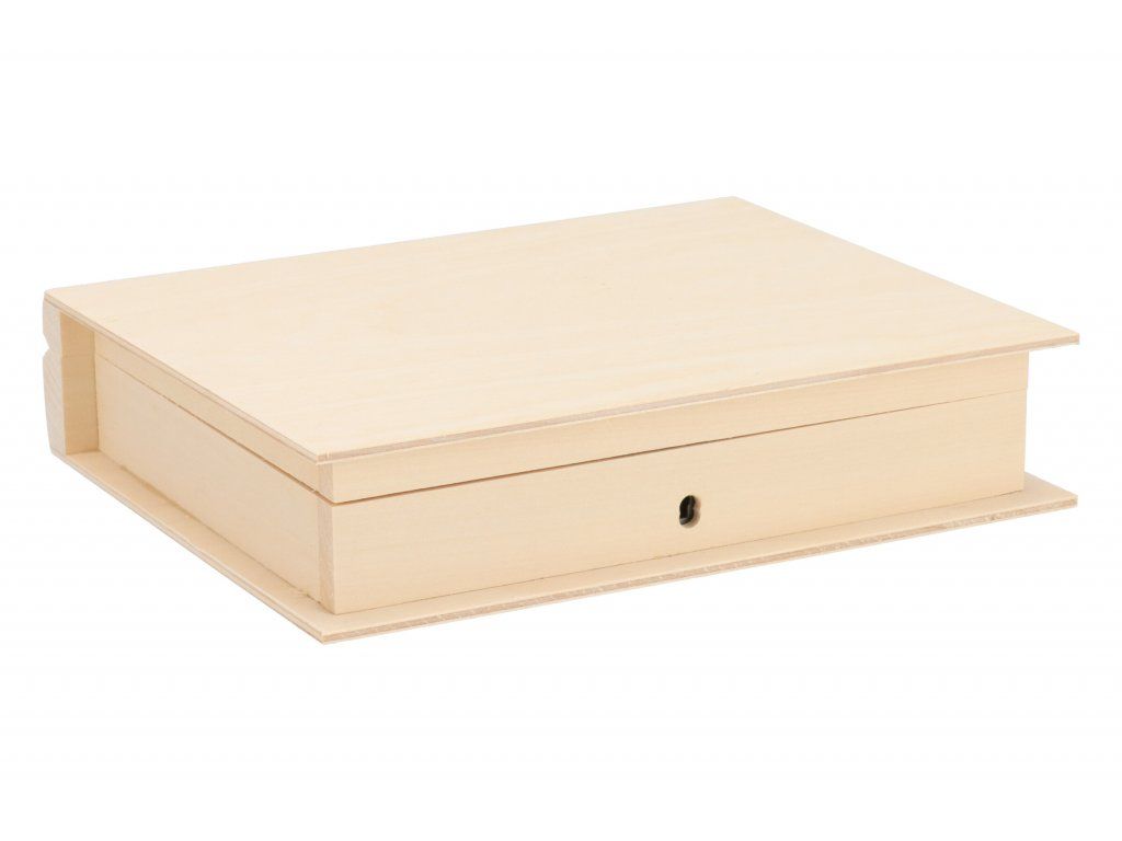 Drevená krabička v tvare knihy z čerstvého borovicového dreva, ktorá ukryje všetko od darčekov po vaše cennosti a maličkosti.