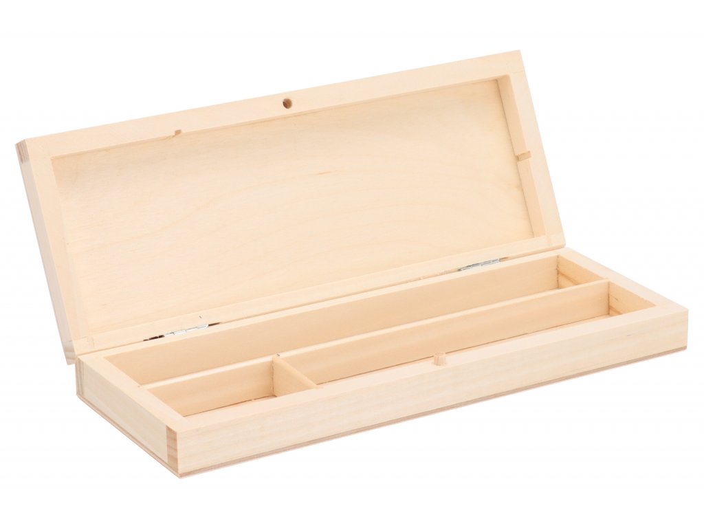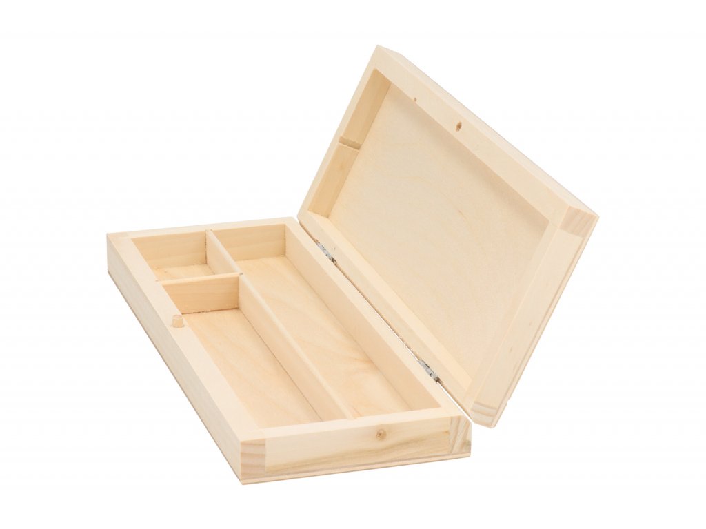 Drevená krabička z borovicového dreva vhodná na uschovanie vašich písacích potrieb. Možné ju využiť aj ako školský peračník.