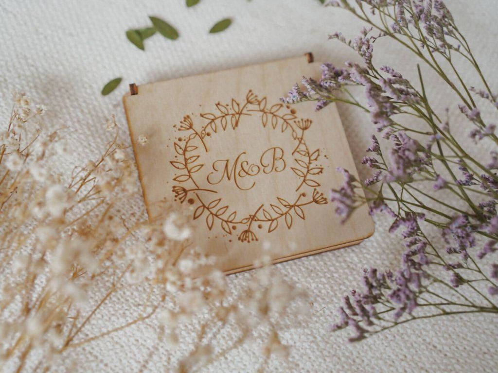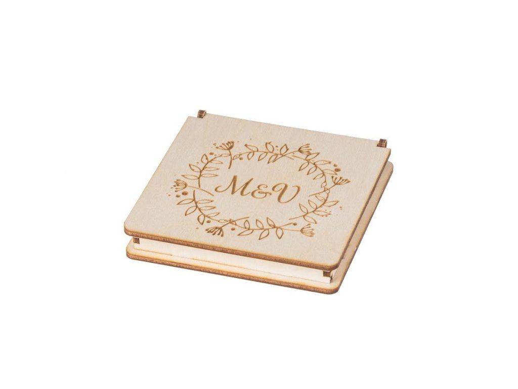 Drevená krabička na snubné prstene z brezovej preglejky hrúbky 3 mm, ktorá je vhodná nielen na váš svadobný deň, ale aj na úschovu šperkov.